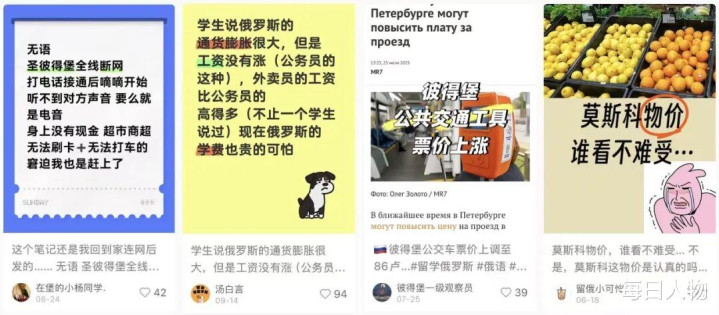 ▲ 社交平台上,在俄罗斯的中国留学生的吐槽。图 / 小红书截图