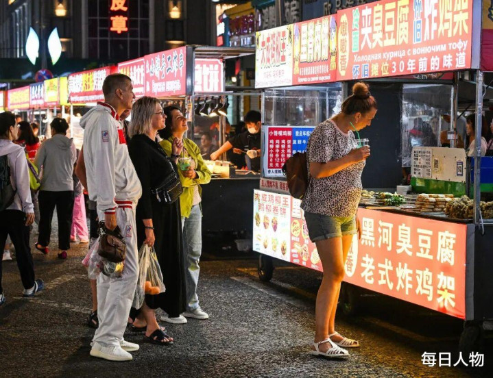 ▲ 俄罗斯游客在东北夜市逛街,享受美食。图 / 视觉中国
